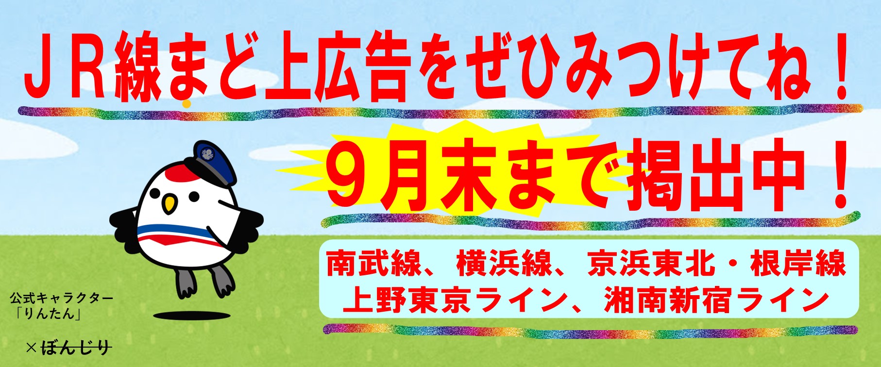 JR線まど上広告(2025年9月) バス運転士 X Facebook はてブ Pocket LINE コピー 2025.09.01 臨港バスの公式キャラクター「りんたん」は、会社の人のいたずらをきっかけに、ファンの方々から「ぼんじり」と呼ばれるようになりました。ぜひ、これからも、「ぼんじりんたん」を、かわいがってあげてください! pic.twitter.com/0KGooUwD8T— 臨港バス 会社&採用情報 by 臨雇対【公式】 (@rinko_koyo) September 1, 2025
