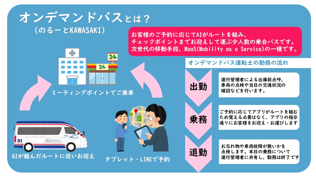 【普通二種免許でOK!オンデマンドバス運転士募集中!】臨港バスでは、普通二種免許でお仕事ができる、オンデマンドバス運転士(パート勤務)を募集しています。ナビが示す道順通りに走る・路線を覚える必要なし・5時間半の短時間勤務・日曜日必ず休み・臨港カラーのかわいいバス!! pic.twitter.com/s3sDtyCTZr